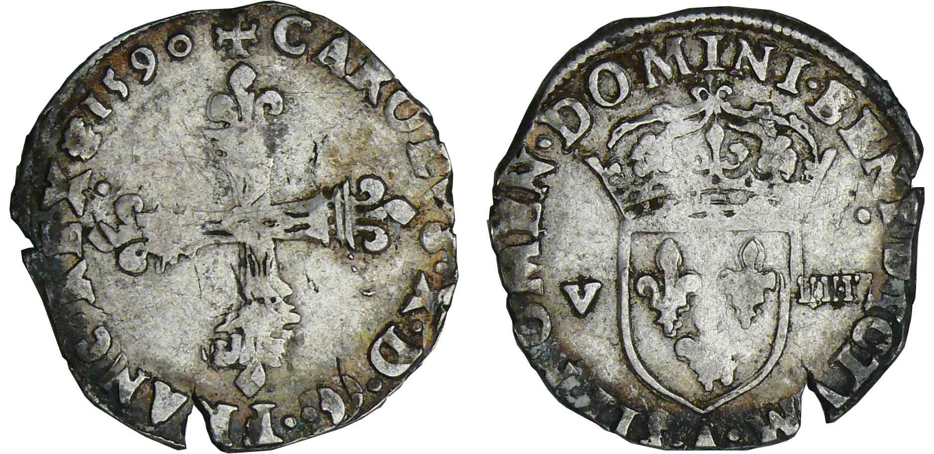 / Charles X – Huitième d’écu – 1590 A (Paris)