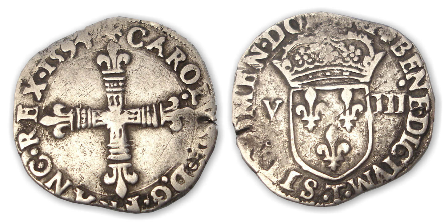 Charles X – Huitième d’écu 1594 T (Nantes)