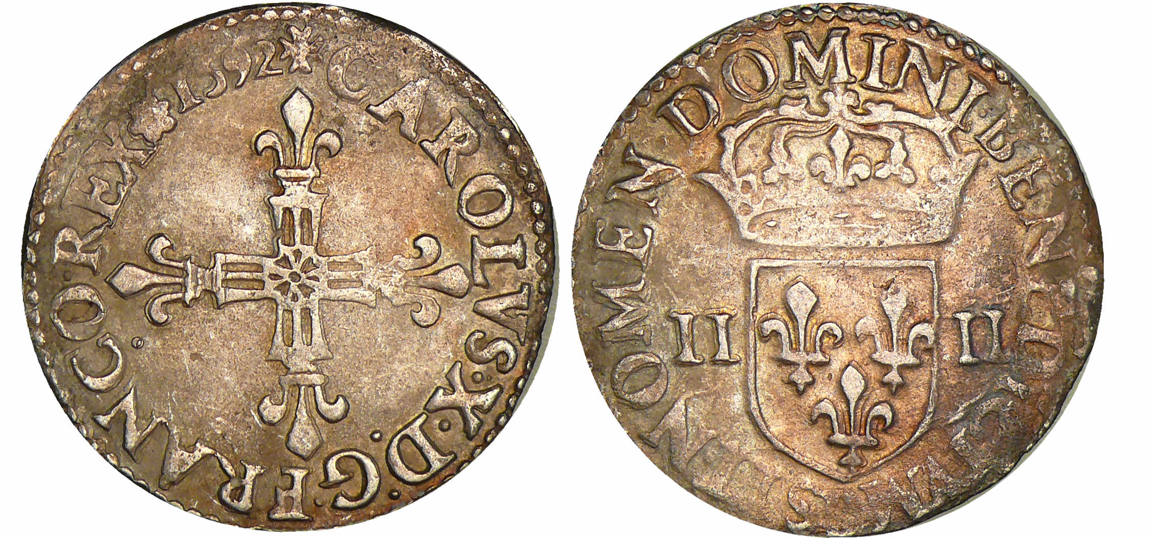 Charles X – Quart d’écu – 1592 B (Rouen)