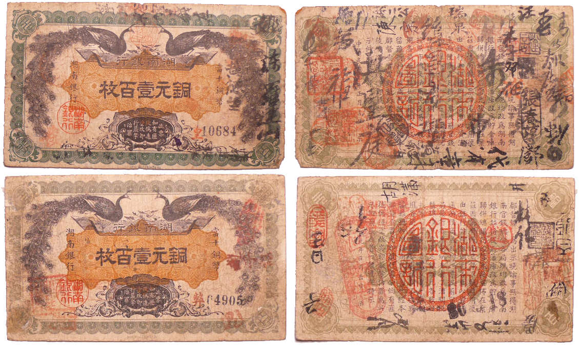 / Chine – Hunan provincial bank – 2 billets de 100 coppers (1912)