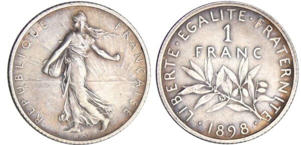 / Troisième république (1871-1940) – 1 franc Semeuse 1898 flan mat