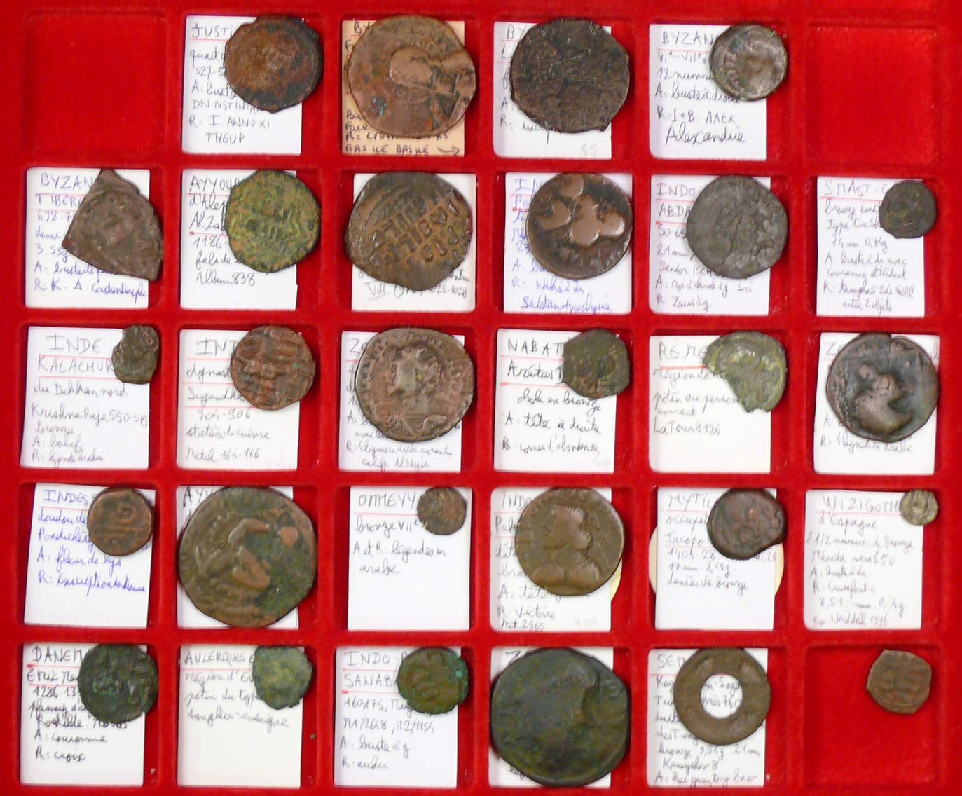 28 monnaies de bronze couvrant les périodes gauloise, byzantine, indo-pathes. Intéressant lot d’étude.