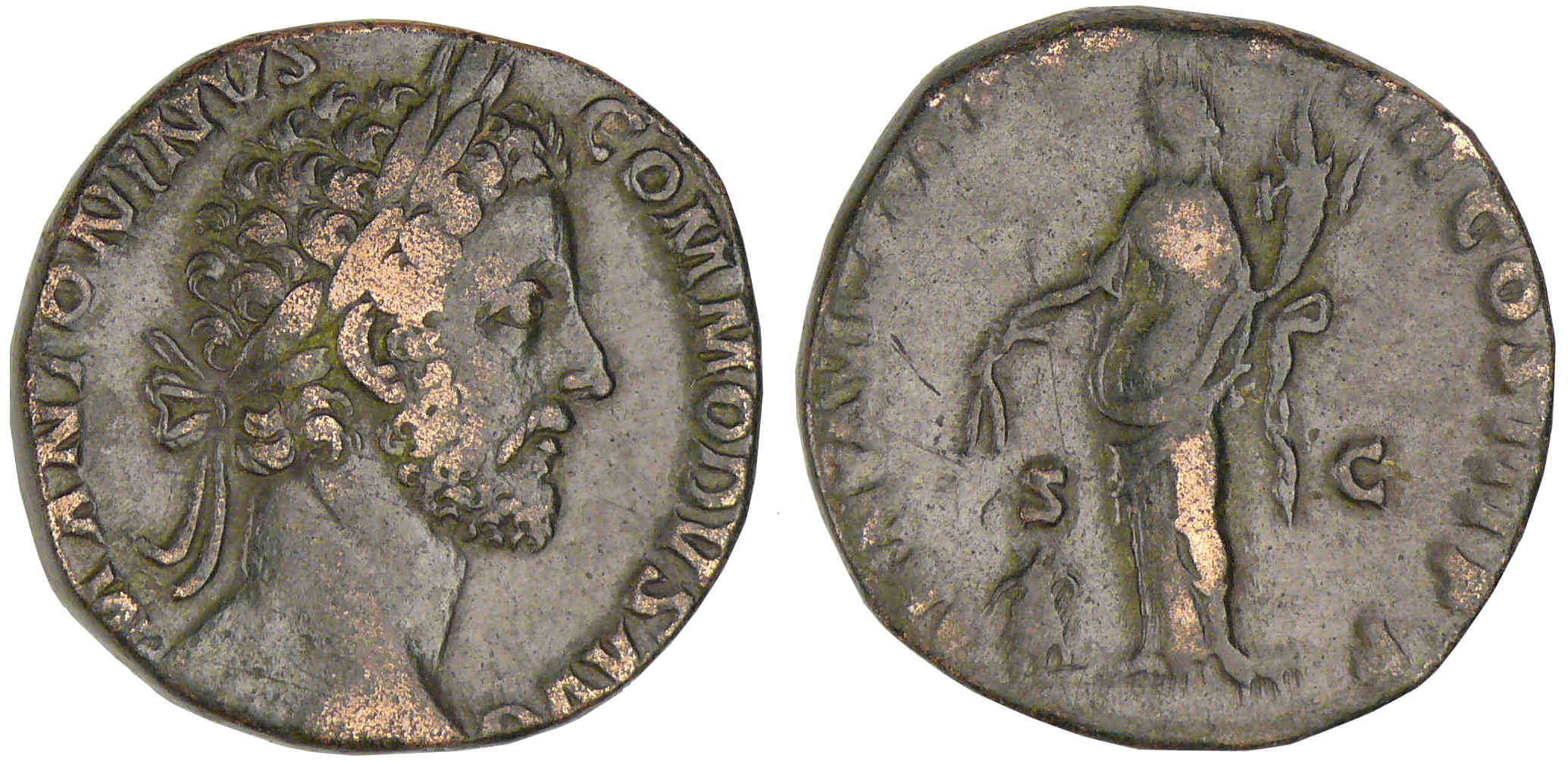 Avers : A/ M ANTONINVS COMMODVS AVG. Tête laurée à droite.