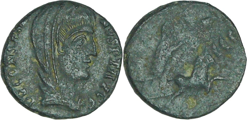 A/ DV CONSTANTINVS PT AVGG. Buste voilé et drapé à droite.