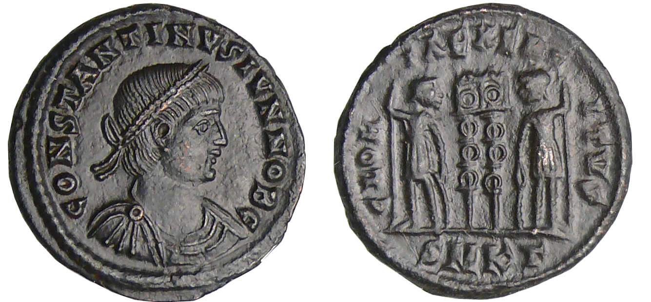 A/ CONSTANTINVS IVN NOB C. Buste lauré et cuirassé à droite.