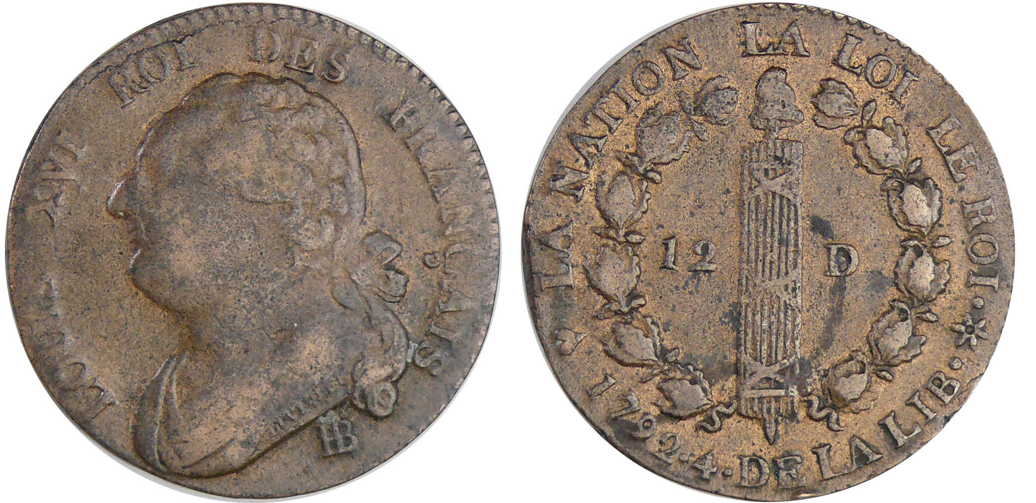 Constitution (1791-1792) – 12 deniers type FRANCAIS 1792 BB (Strasbourg) An 3