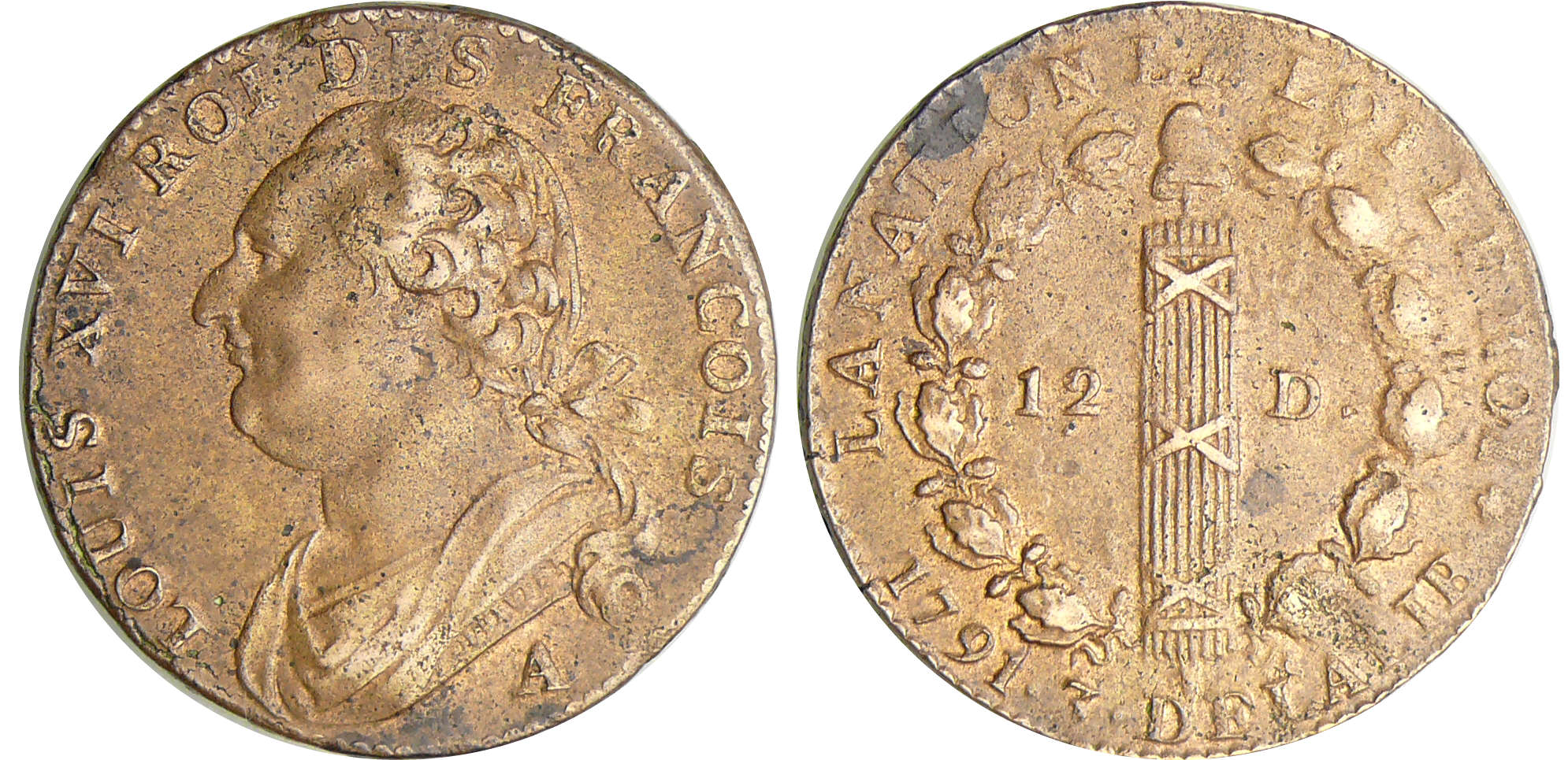 / Constitution (1791-1792) – 12 deniers type FRANCOIS 1791 A (Paris)