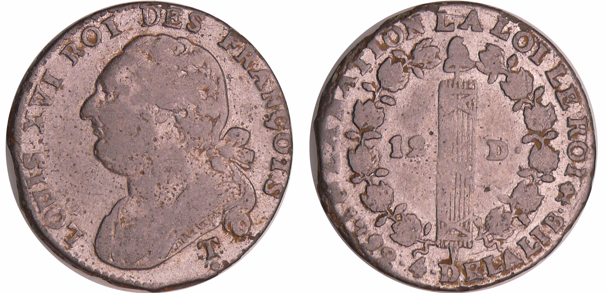 Constitution (1791-1792) – 12 deniers type FRANCOIS 1793 T. (Saumur)