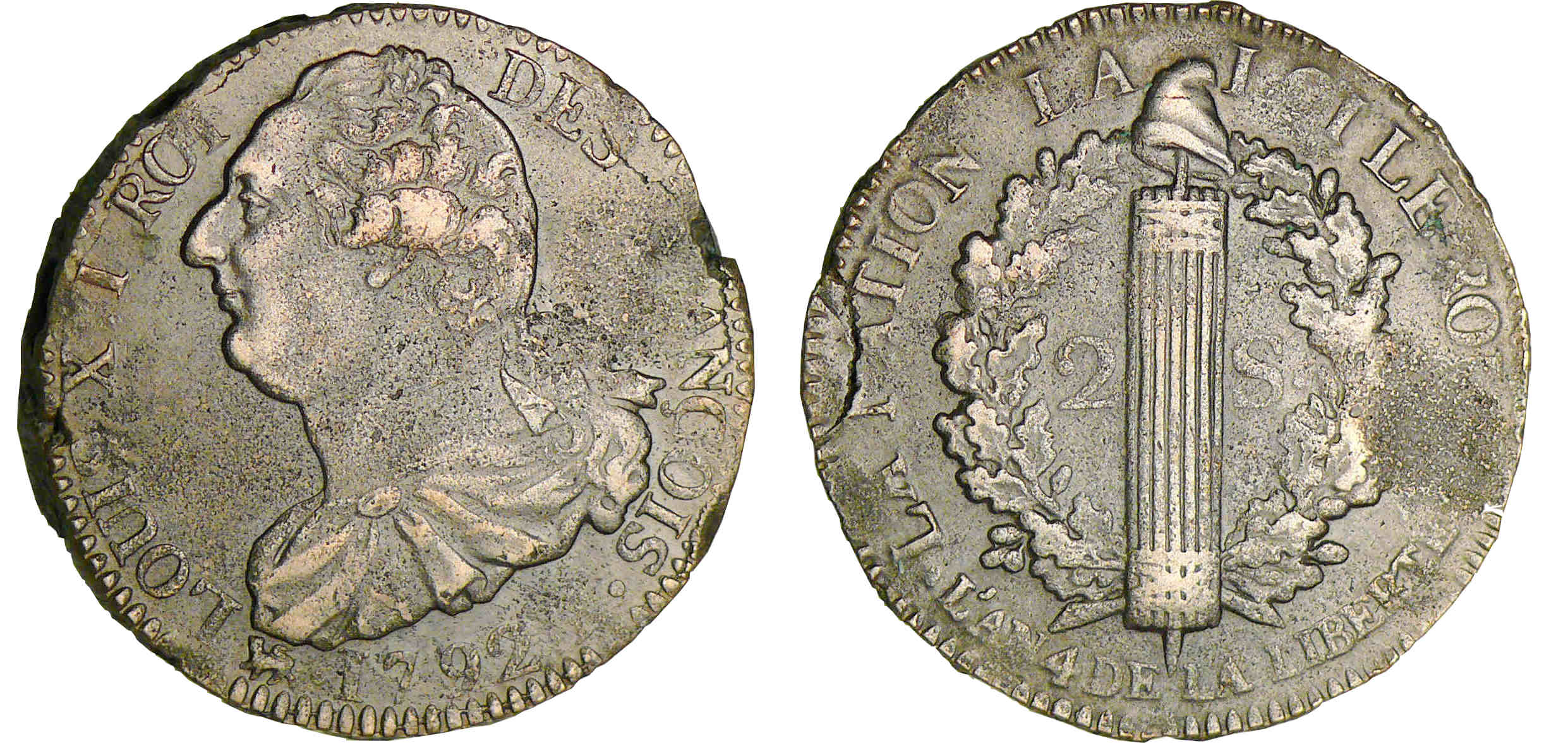/ Constitution (1791-1792) – 2 sols au faisceau type FRANCOIS 1792 A (Paris)