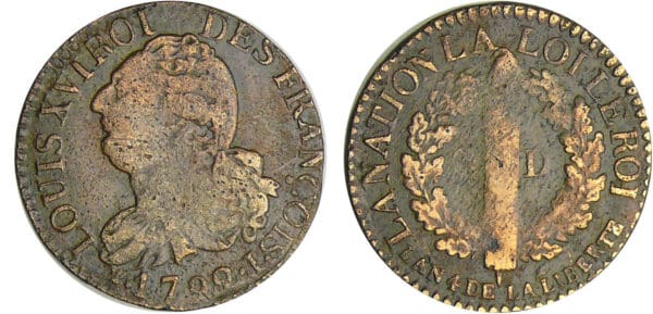 Constitution (1791-1792) – 3 deniers type FRANCOIS 1792 D (Lyon)