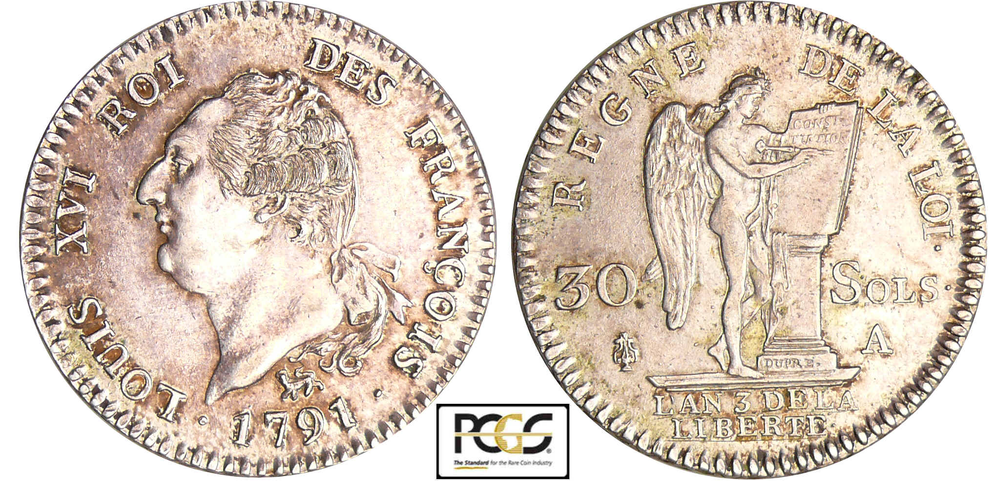 Constitution (1791-1792) – 30 sols type FRANCOIS 1791 A (Paris) 1er sem. léopard