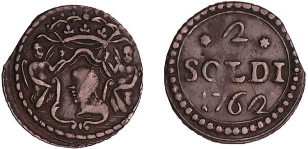R/ 2 SOLDI (millésime) dans un cartouche baroque.