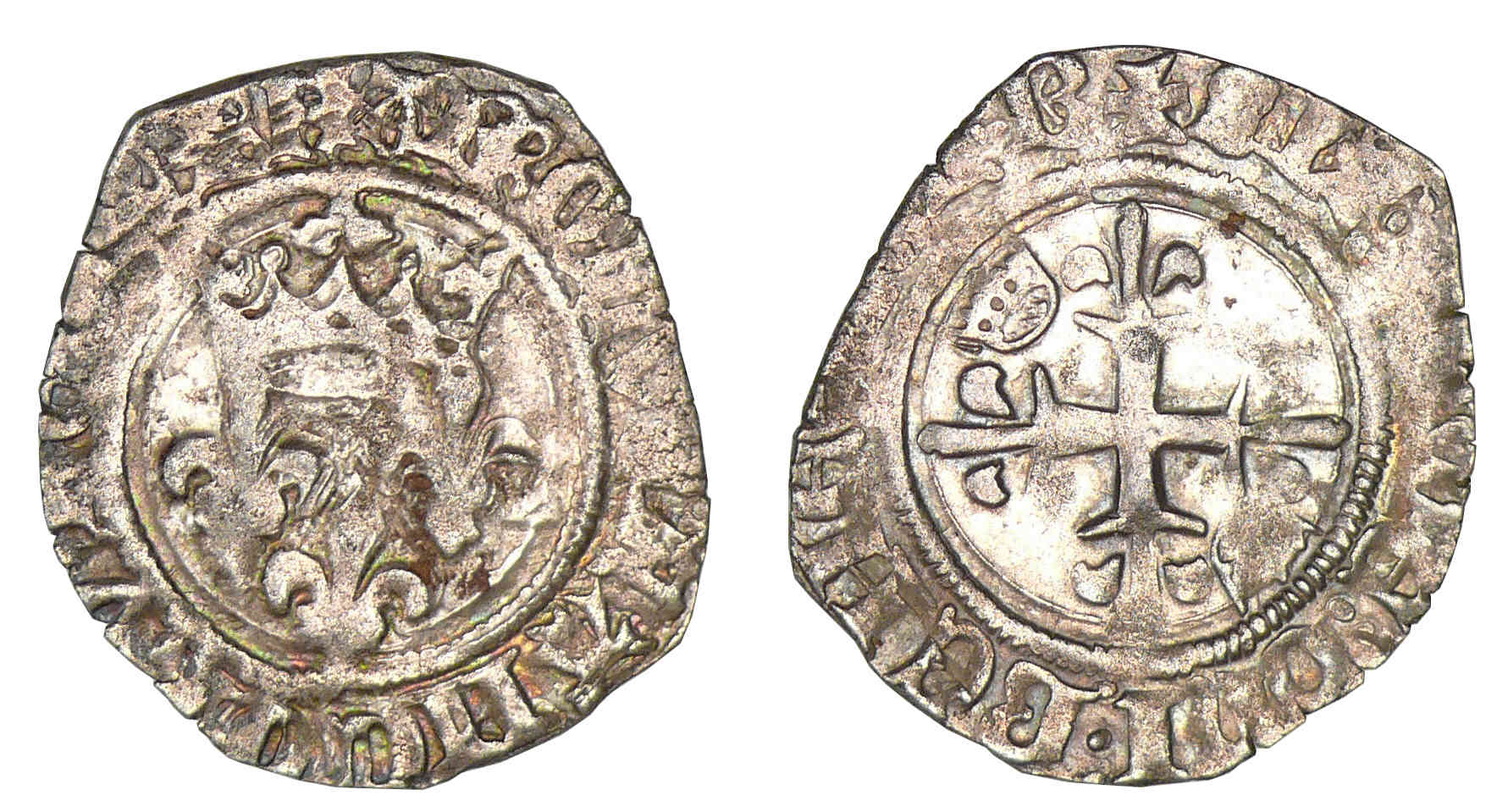 Avers : A/ + KAROLVS: FRANCORV: REX: B. Trois lis posés sous une couronne tréflée.