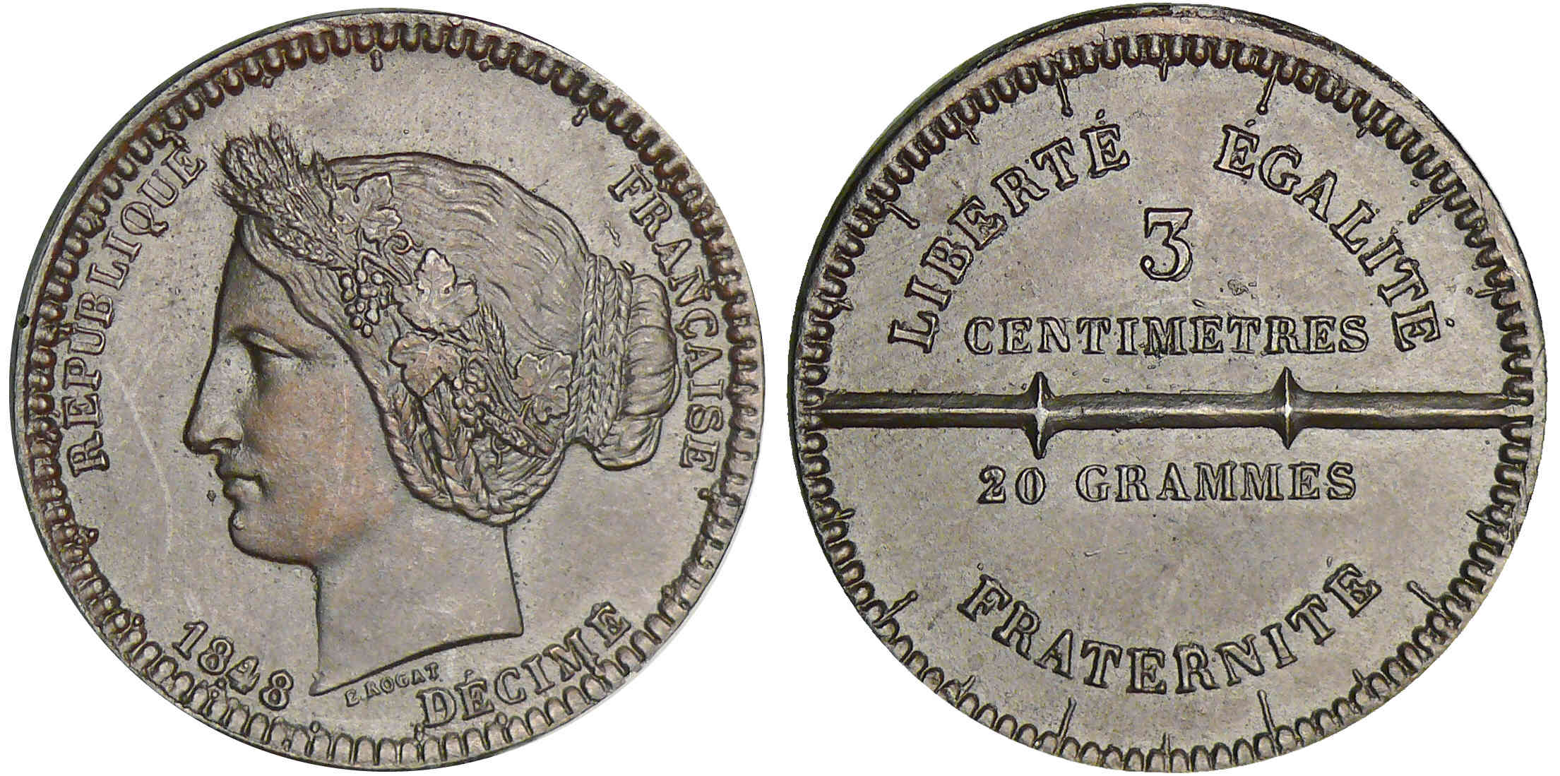 Deuxième république – 10 centimes concours de Rogat 1848 – Piéfort