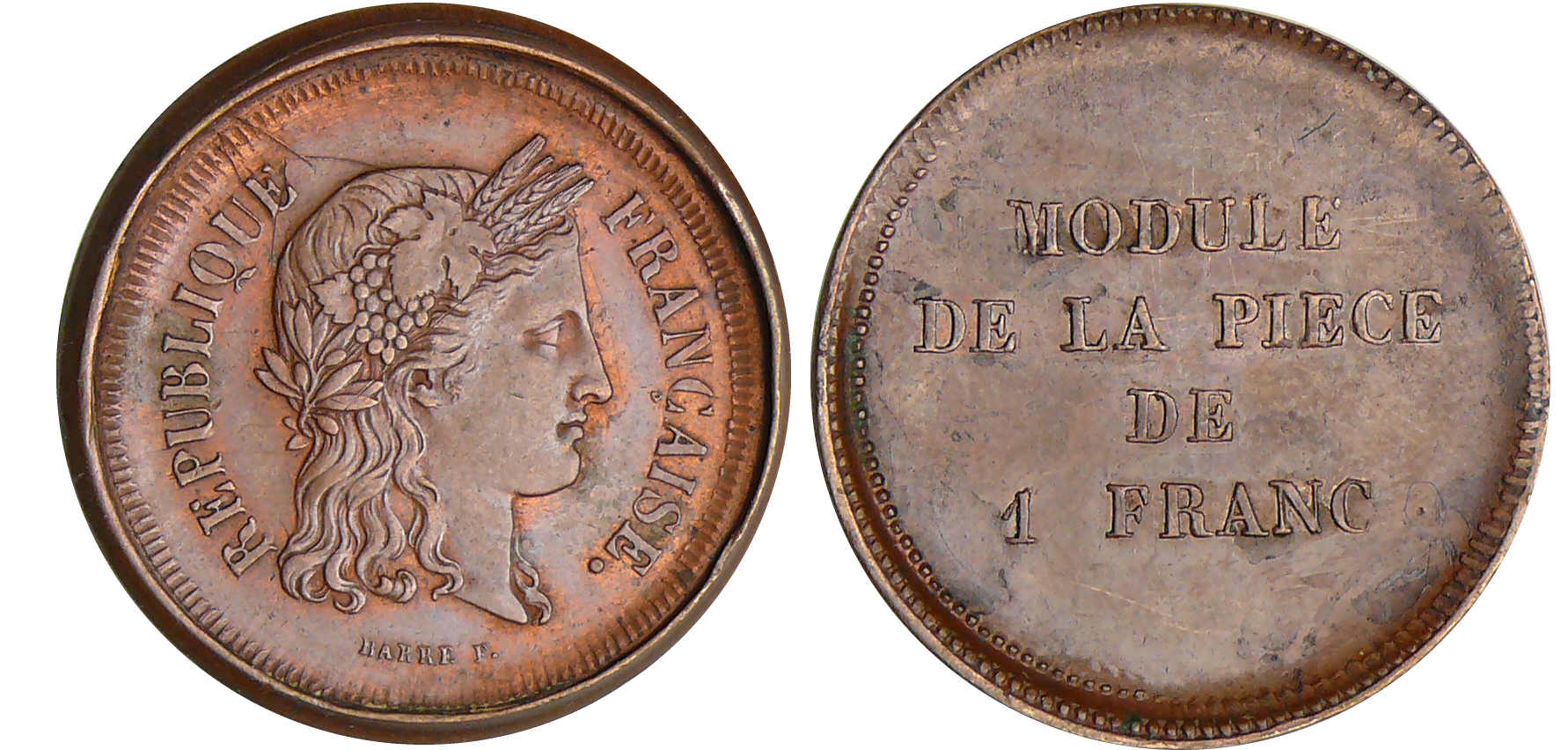 Deuxième république (1848-1852) – Module de la 1 franc sd (1848) épreuve de Barre