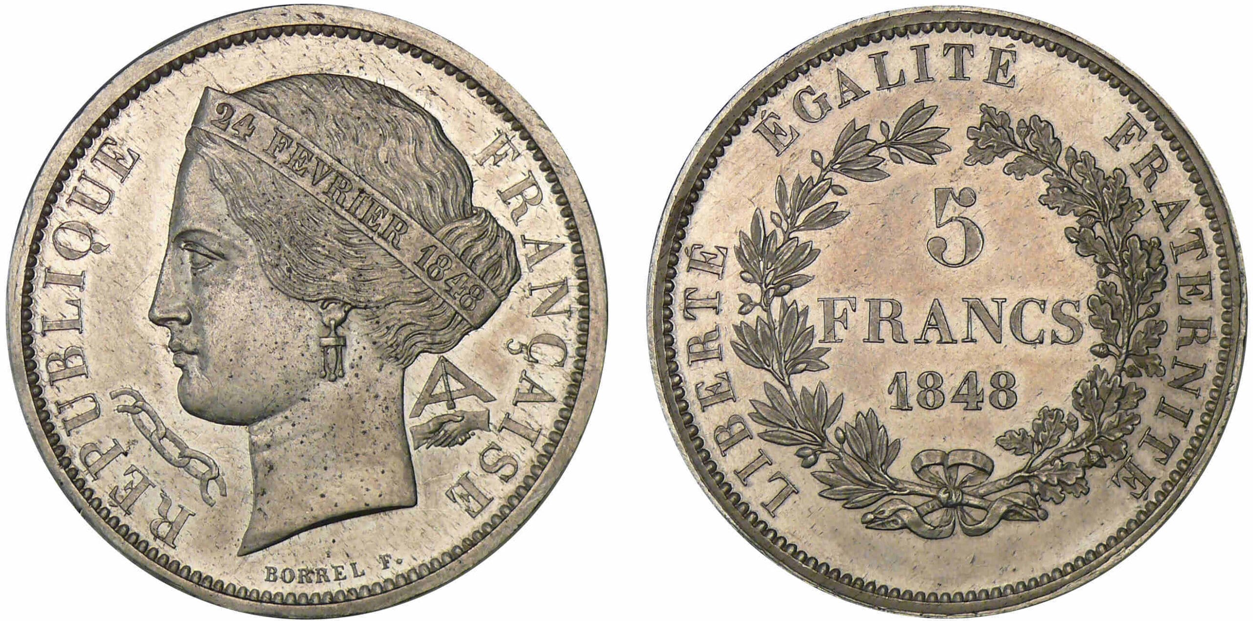 Deuxième république – 5 francs – Concours de Borrel 1848