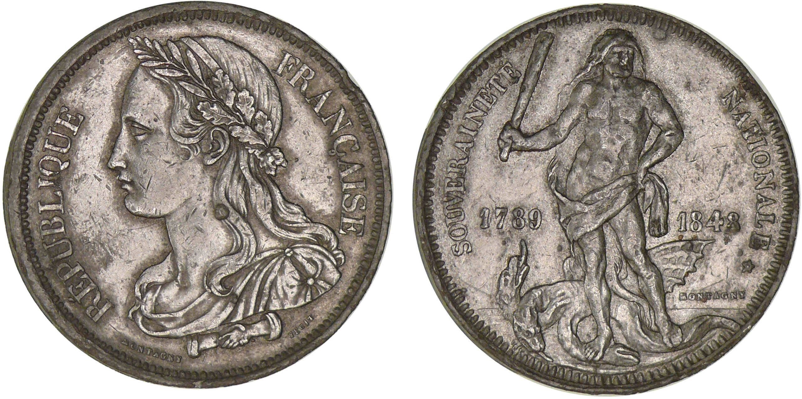 R/ SOUVRAINETE NATIONALES 1789 / 1848. Hercule debout tenant une massue et terrassant un dragon.