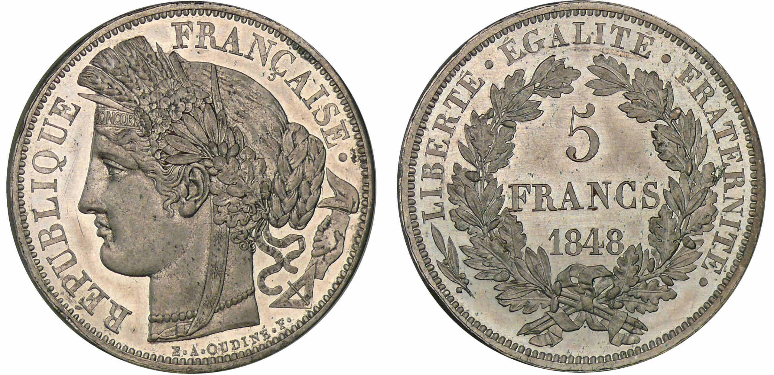 Deuxième république – 5 francs – Concours de Oudiné 1848