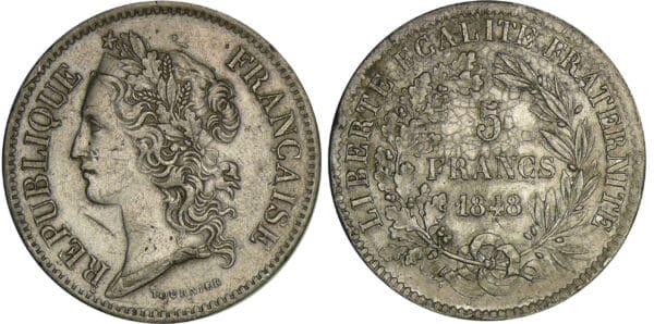 Deuxième république – 5 francs concours de Tournier 1848