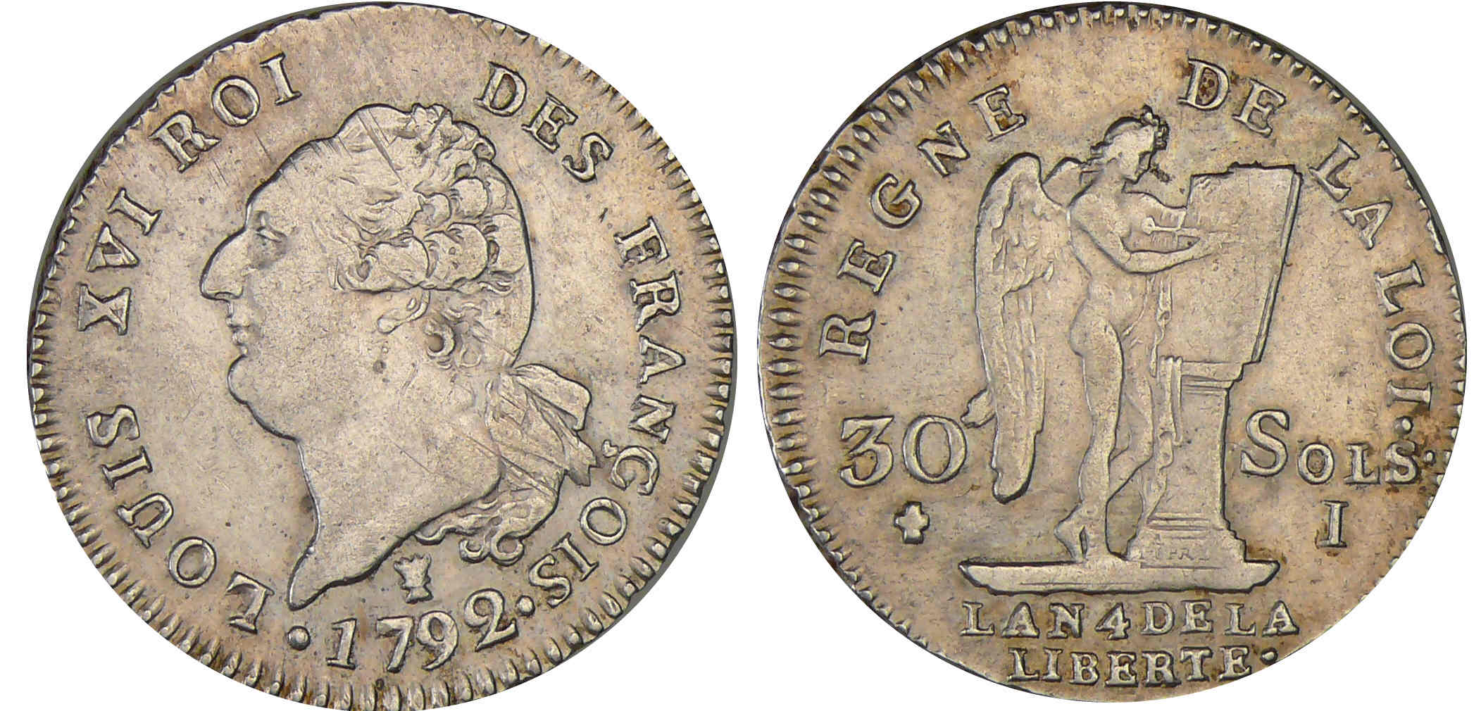 Constitution (1791-1792) – 30 sols type FRANCOIS 1792 I (Limoges)