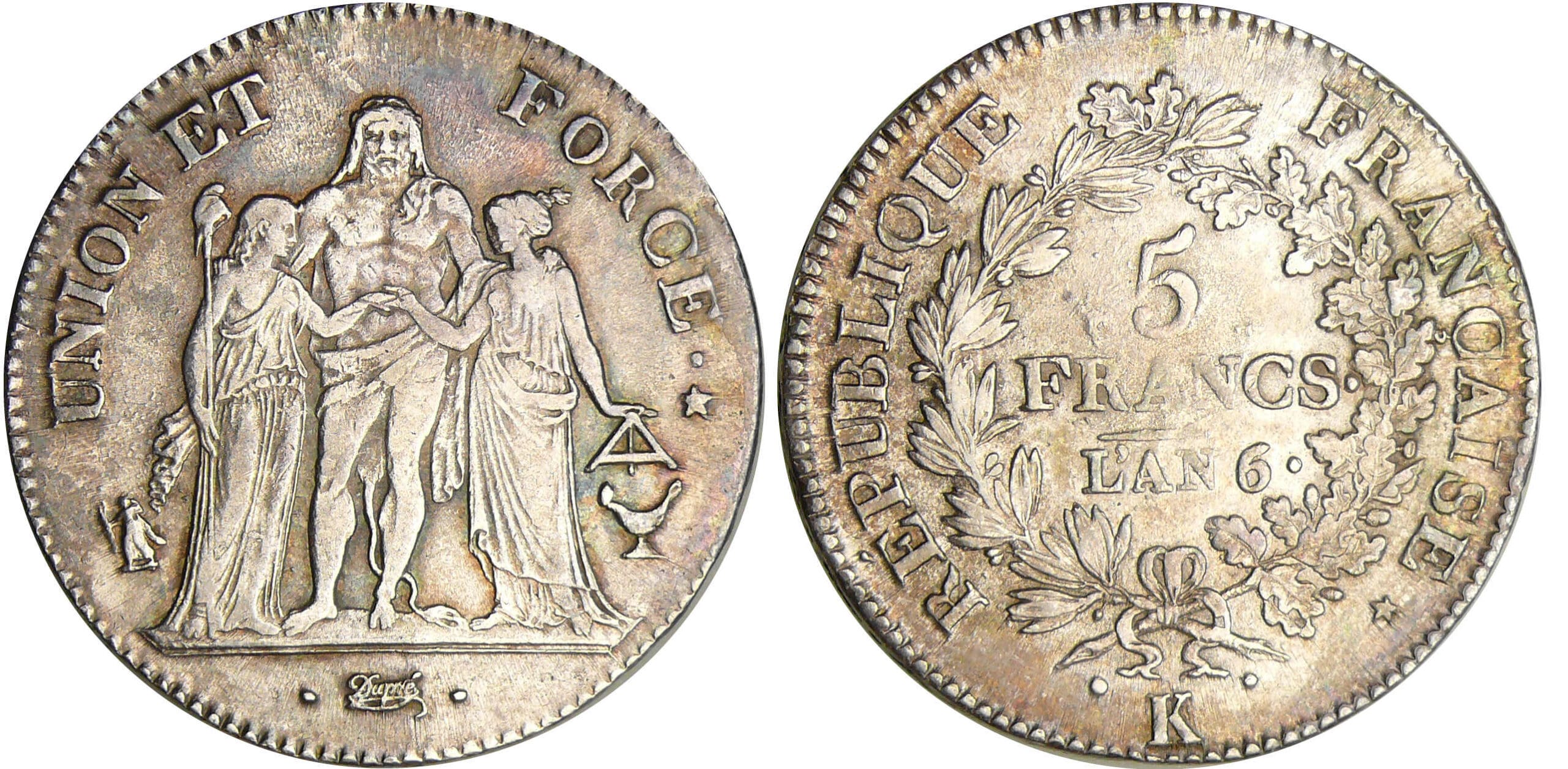 Directoire (1795-1799) – 5 francs Hercule union et force An 6 K (Bordeaux)