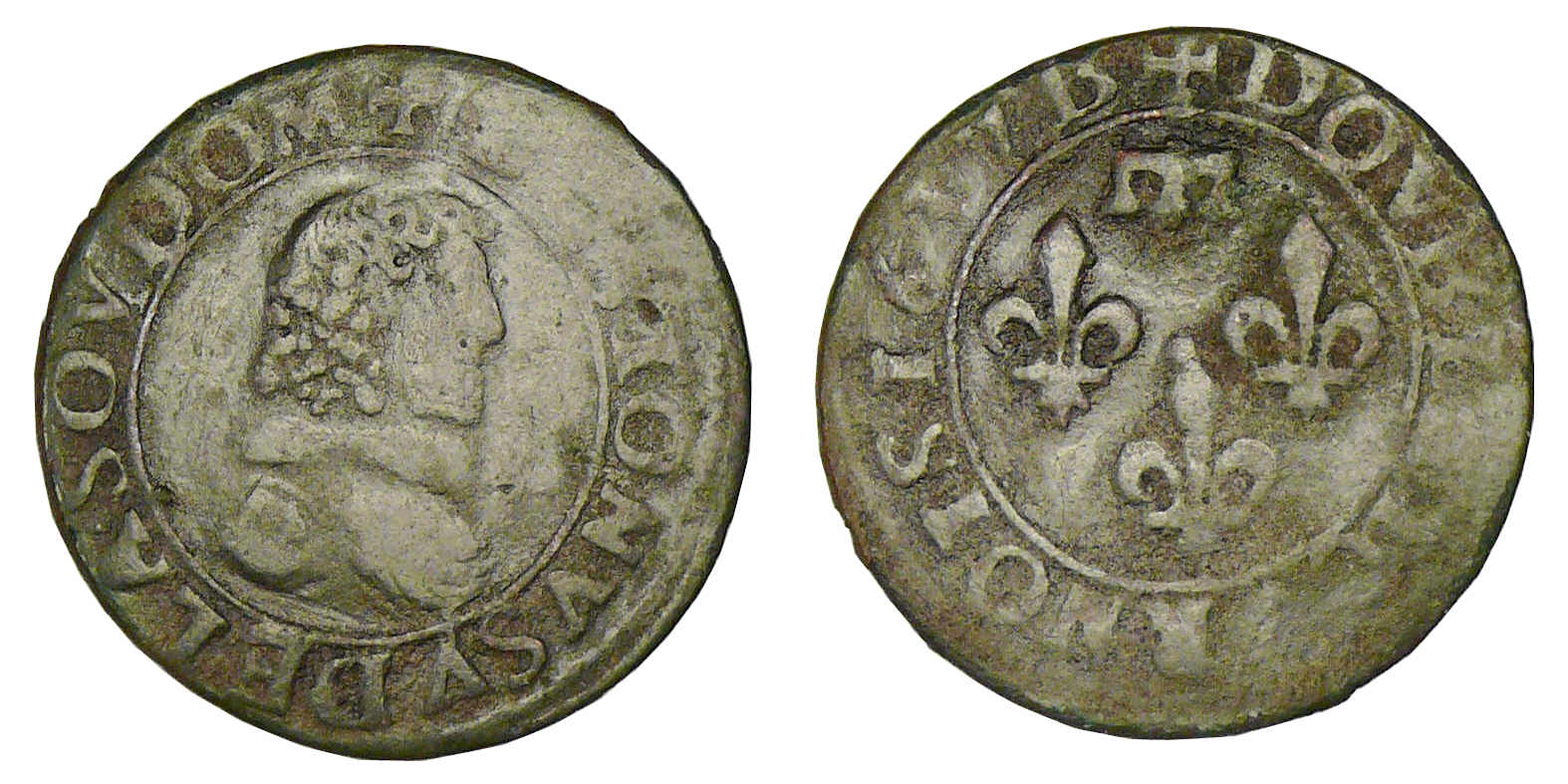 R/ DOVBLE TOVRNOIS (millésime) B. Trois lis posés 2 et 1 sous un lambel.