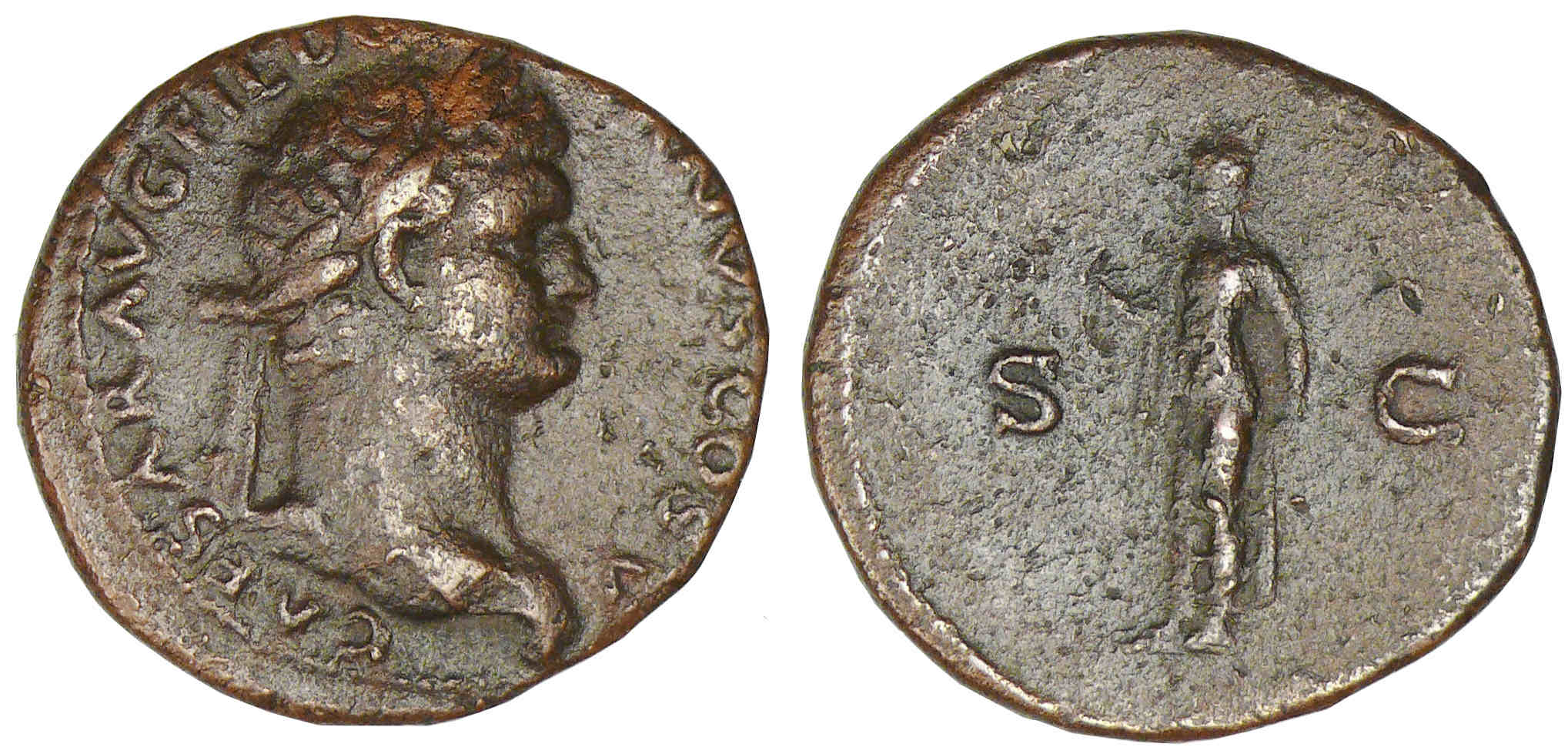 A/ CAESAR AVG F DOMITIAN COS V. Tête laurée à droite.