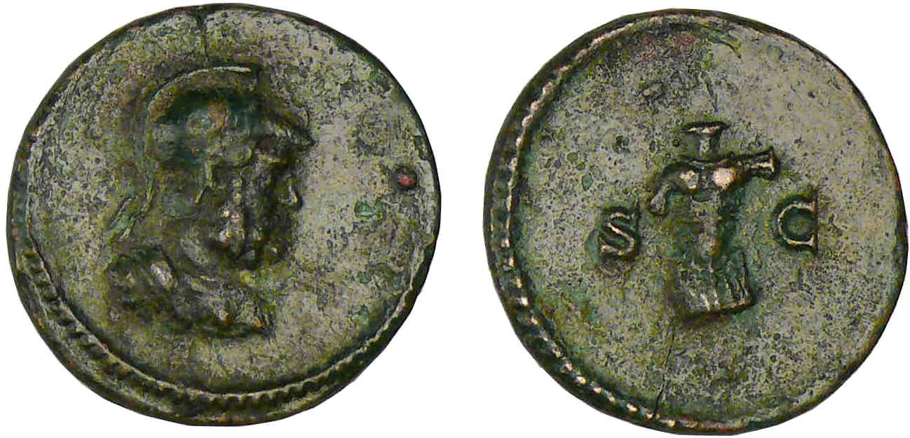 A/ Buste casqué de Mars à droite.