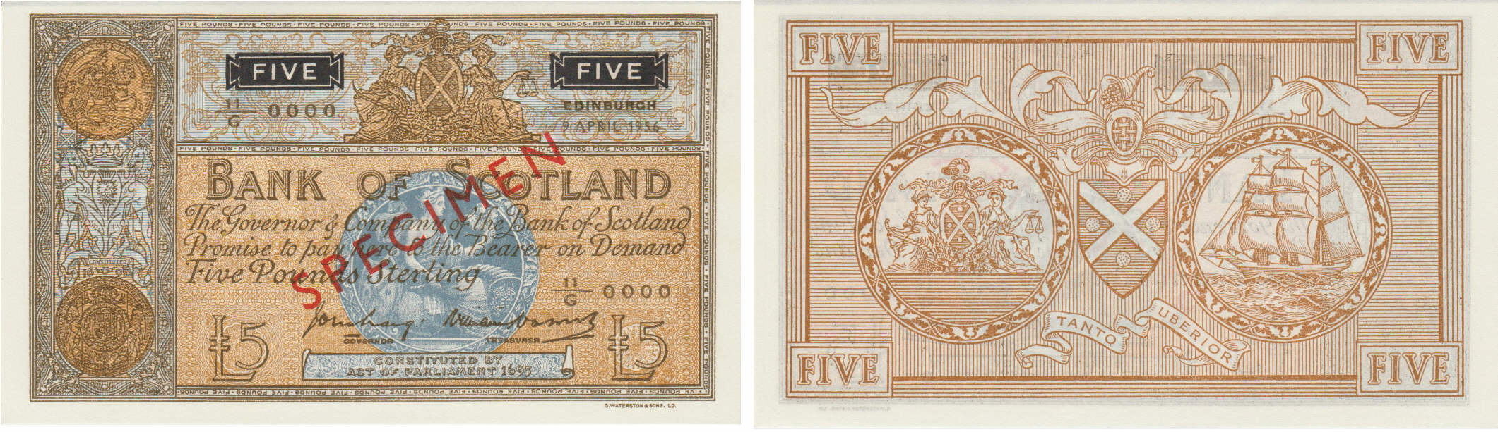 / Ecosse – Bank of Scotland, 5 pounds, 9th April 1956 « SPECIMEN »