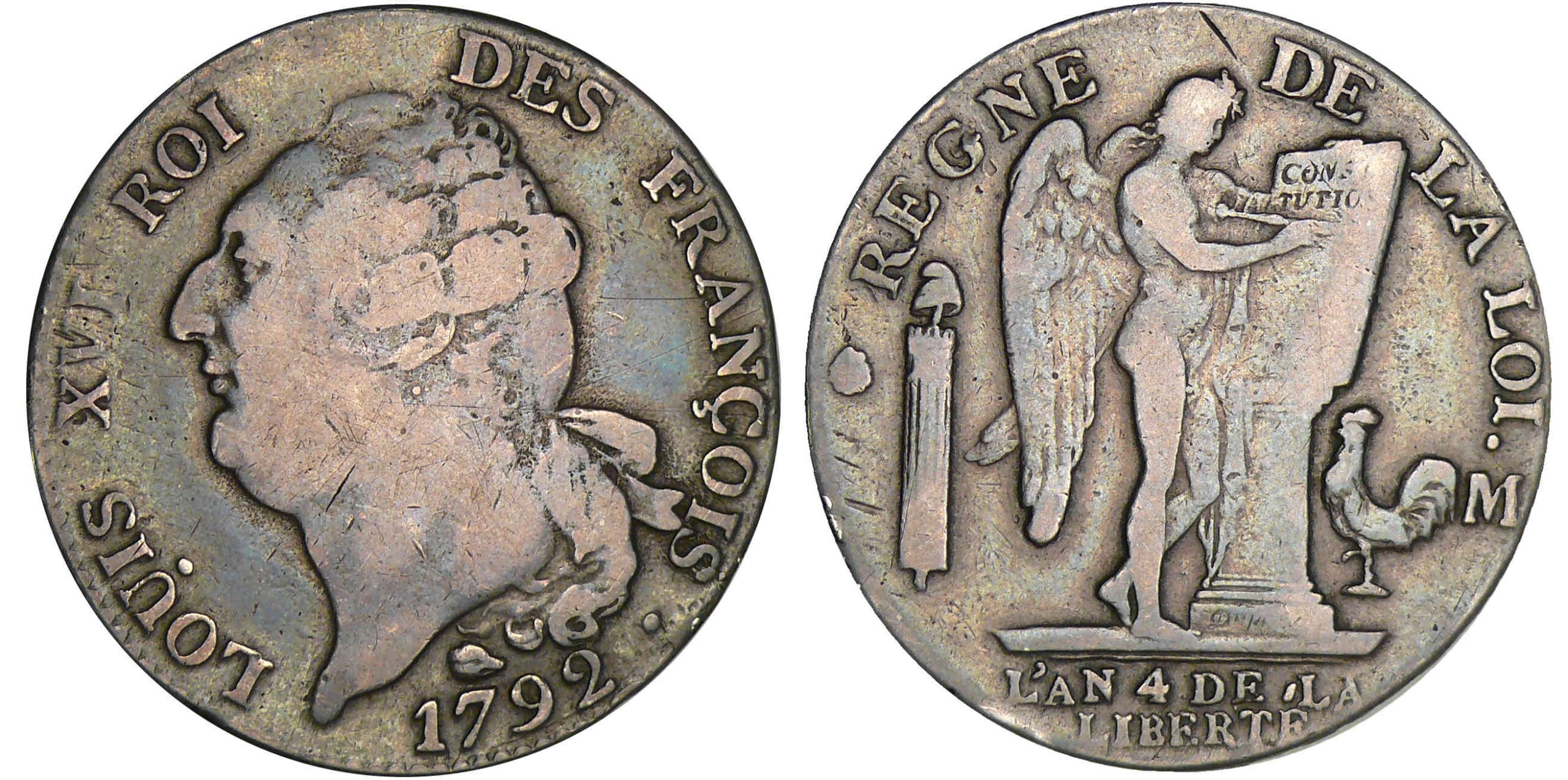 Avers : A/ LOUIS XVI ROI DES FRANCOIS (millésime). Buste du roi à gauche.