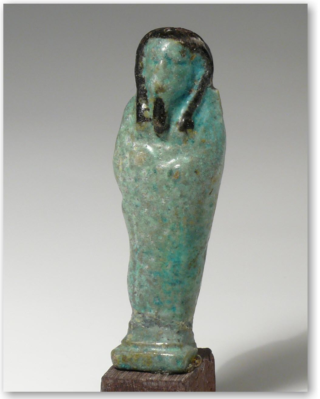 Bel aoushebti en frite bleue entièrement recouvert de sa glaçure – 63×21 mm.