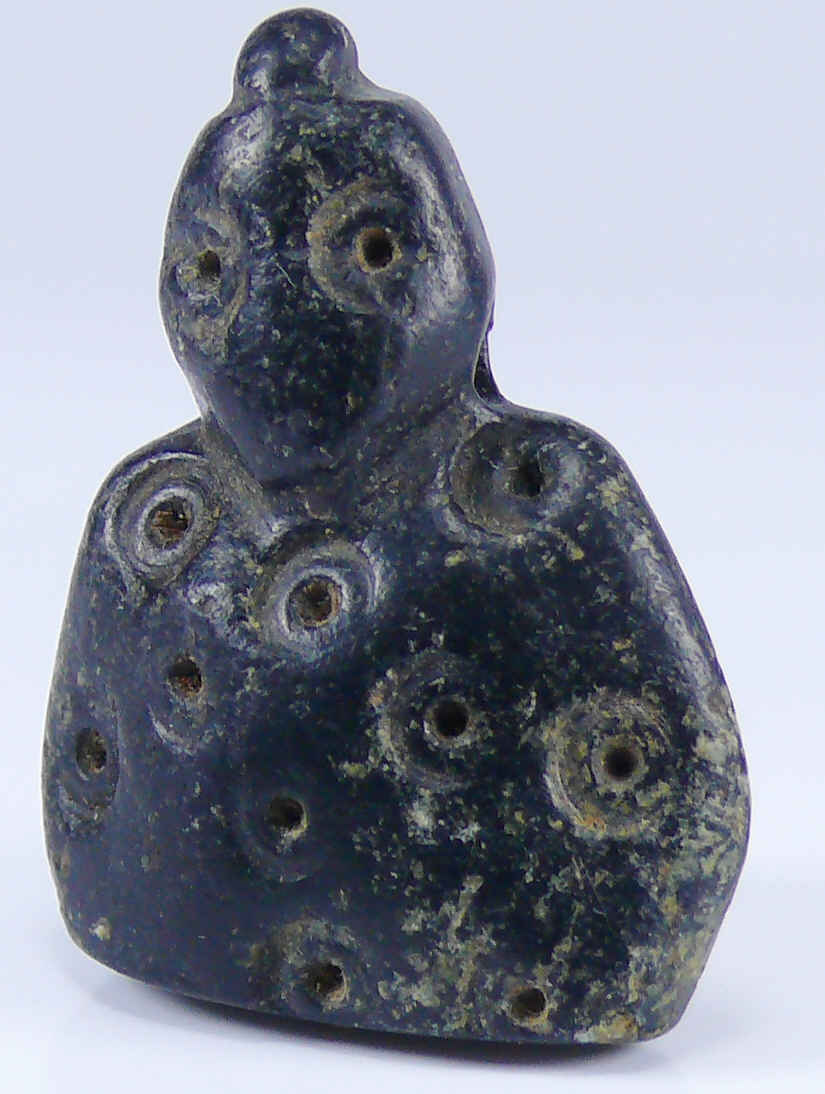Buste en pierre noire recouvert d’annelets. 35 mm de hauteur.
