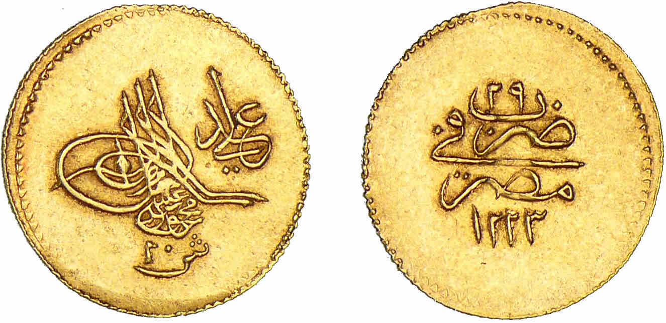 / Egypte – Sultanat turc – Mahmud II – 20 piastres ۱۲۲۳ / ۲۹ (1836)