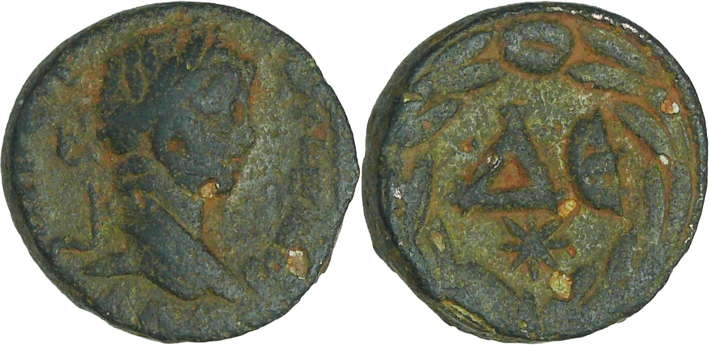 A/ AVT K M AV ANTΩNINOS Tête laurée à droite.