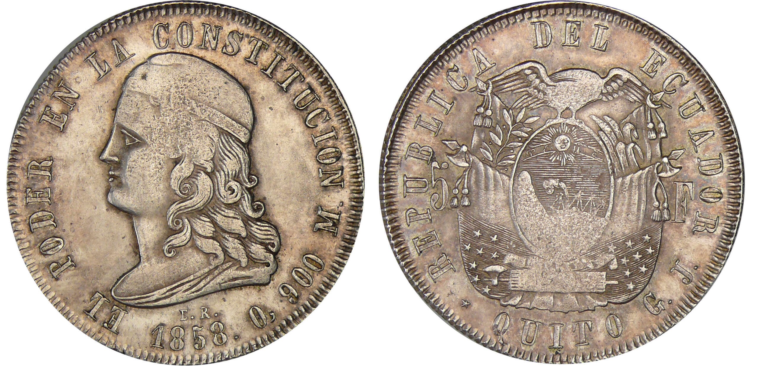 / Equateur (Ecuador) – 5 francos 1858 GJ