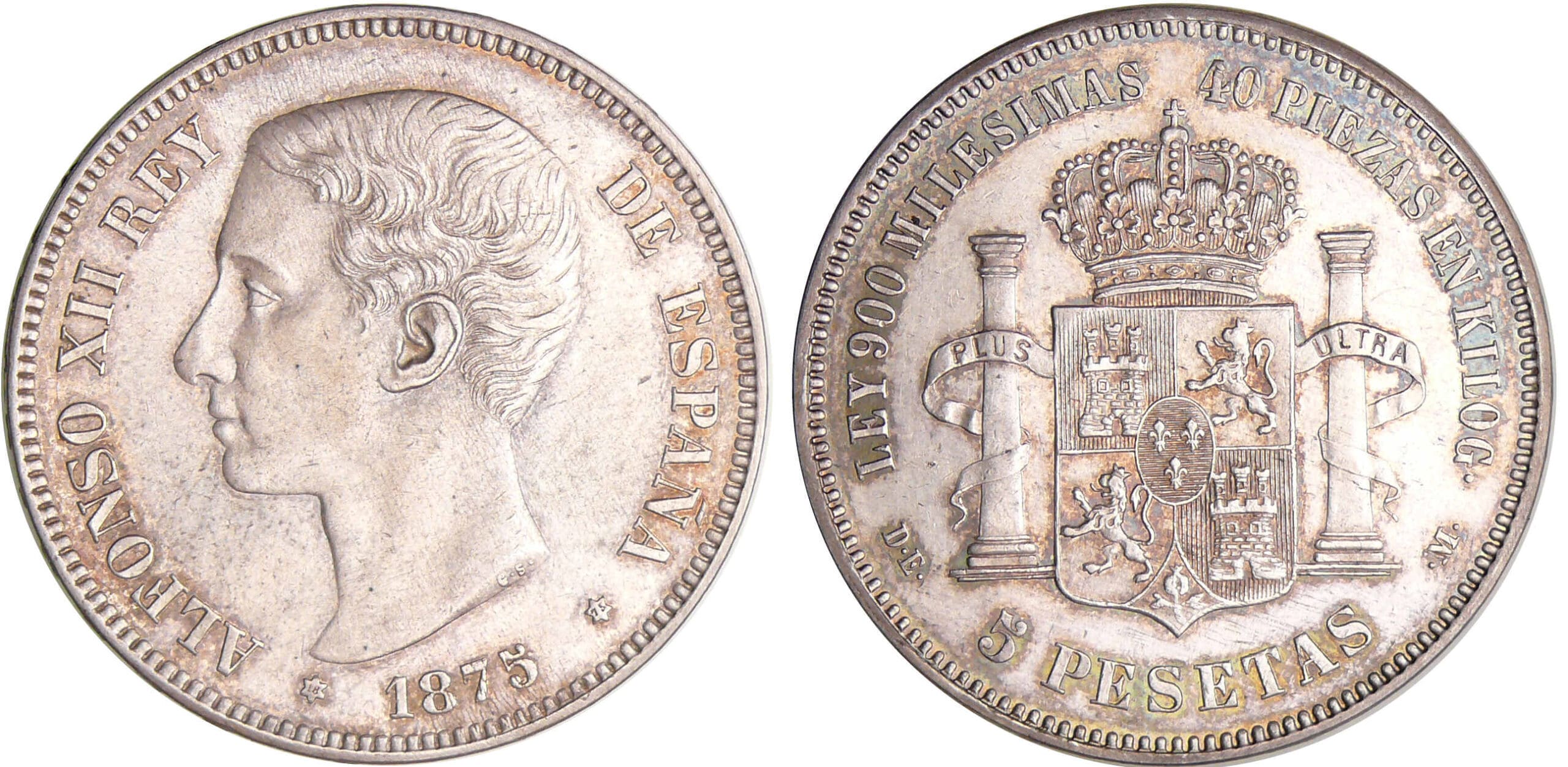/ Espagne – Alfonso XII (1874-1885) – 5 pestas 1875 M (Madrid)