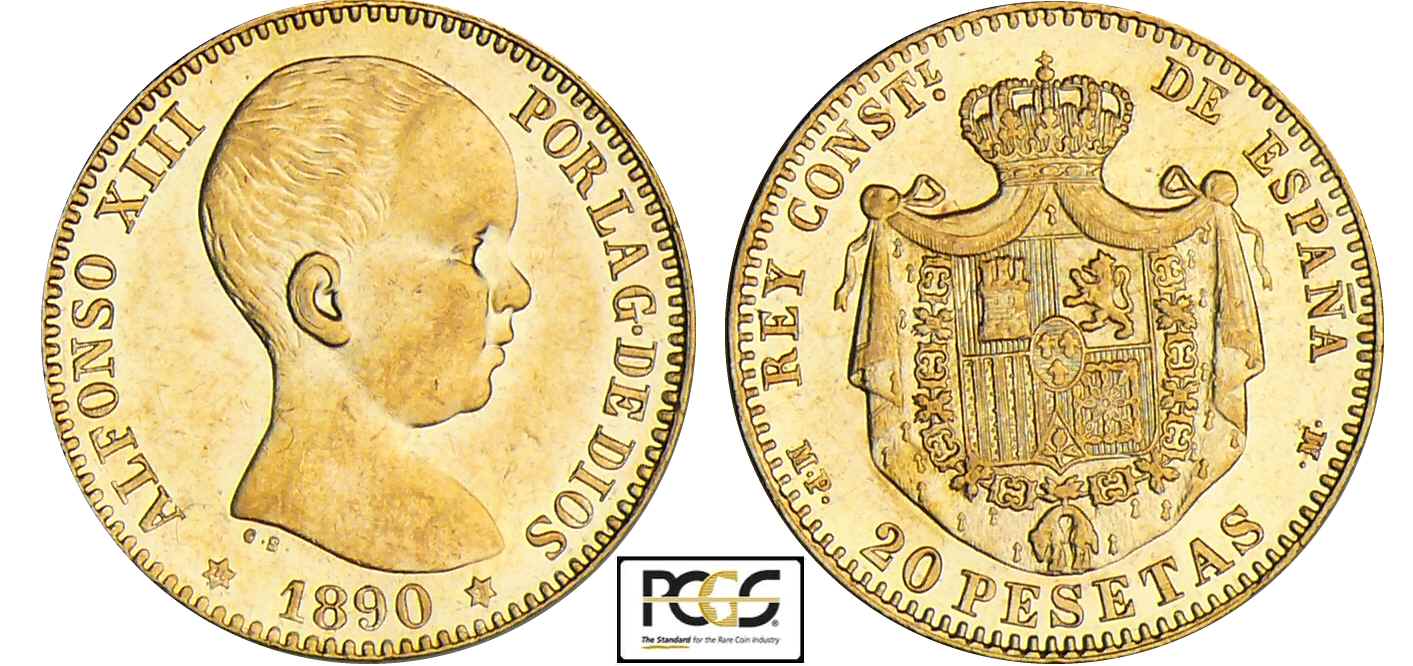 Espagne – Alfonso XIII – 20 pesetas 1890 * 90 (Madrid)