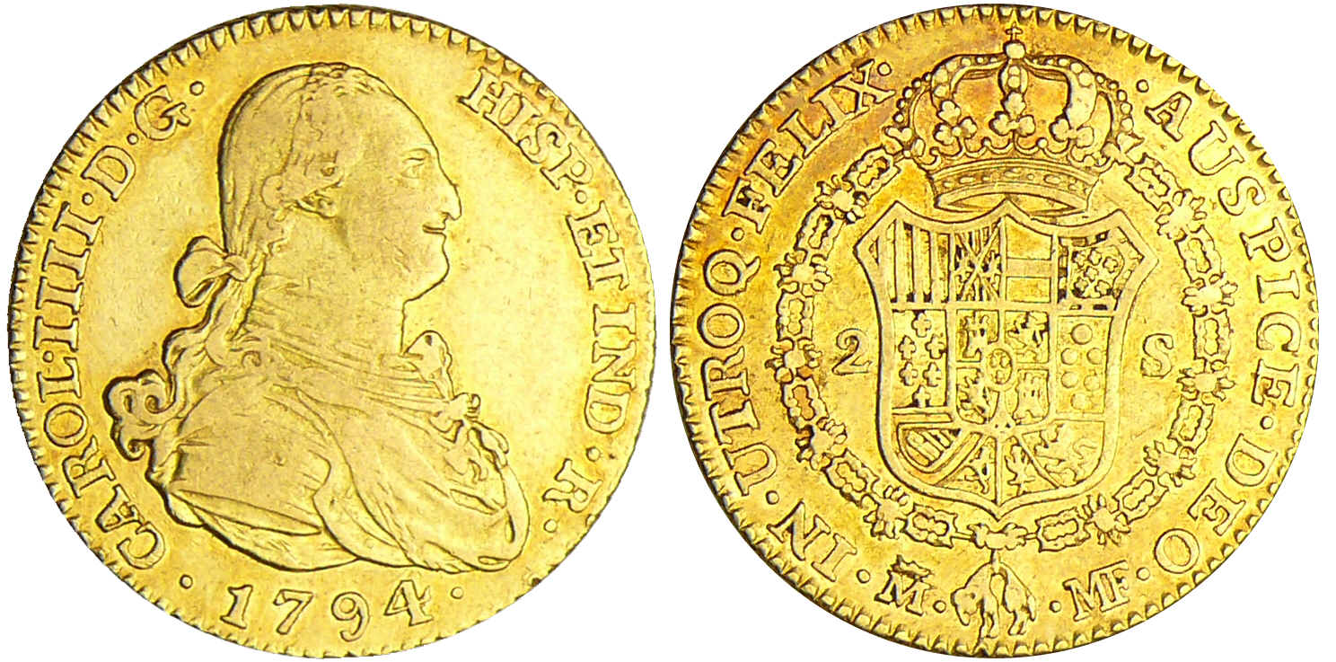 Espagne – Carlos IIII (1788-1808) – 2 escudos 1794 (Madrid)