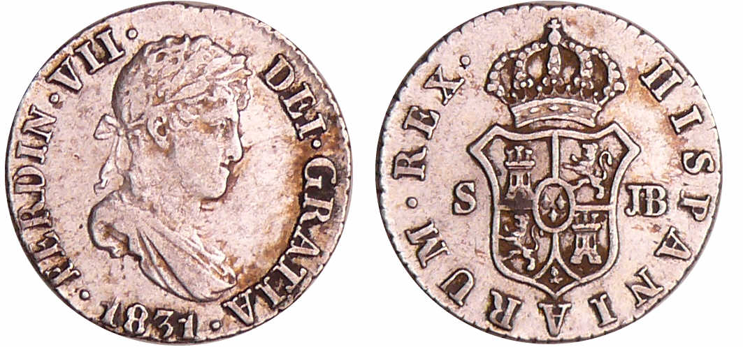 Espagne – Fernando VII (1808-1833) – 1/2 real 1831 JP (Seville)