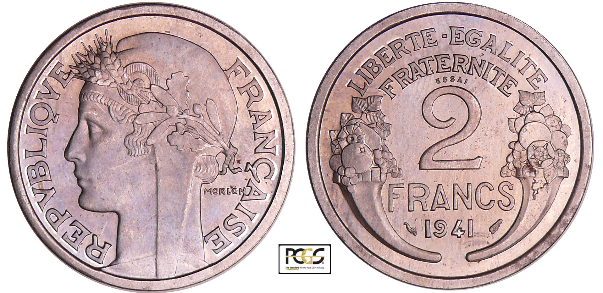 / Etat-Français (1940-1944) – 2 francs Morlon 1941 essai en fer