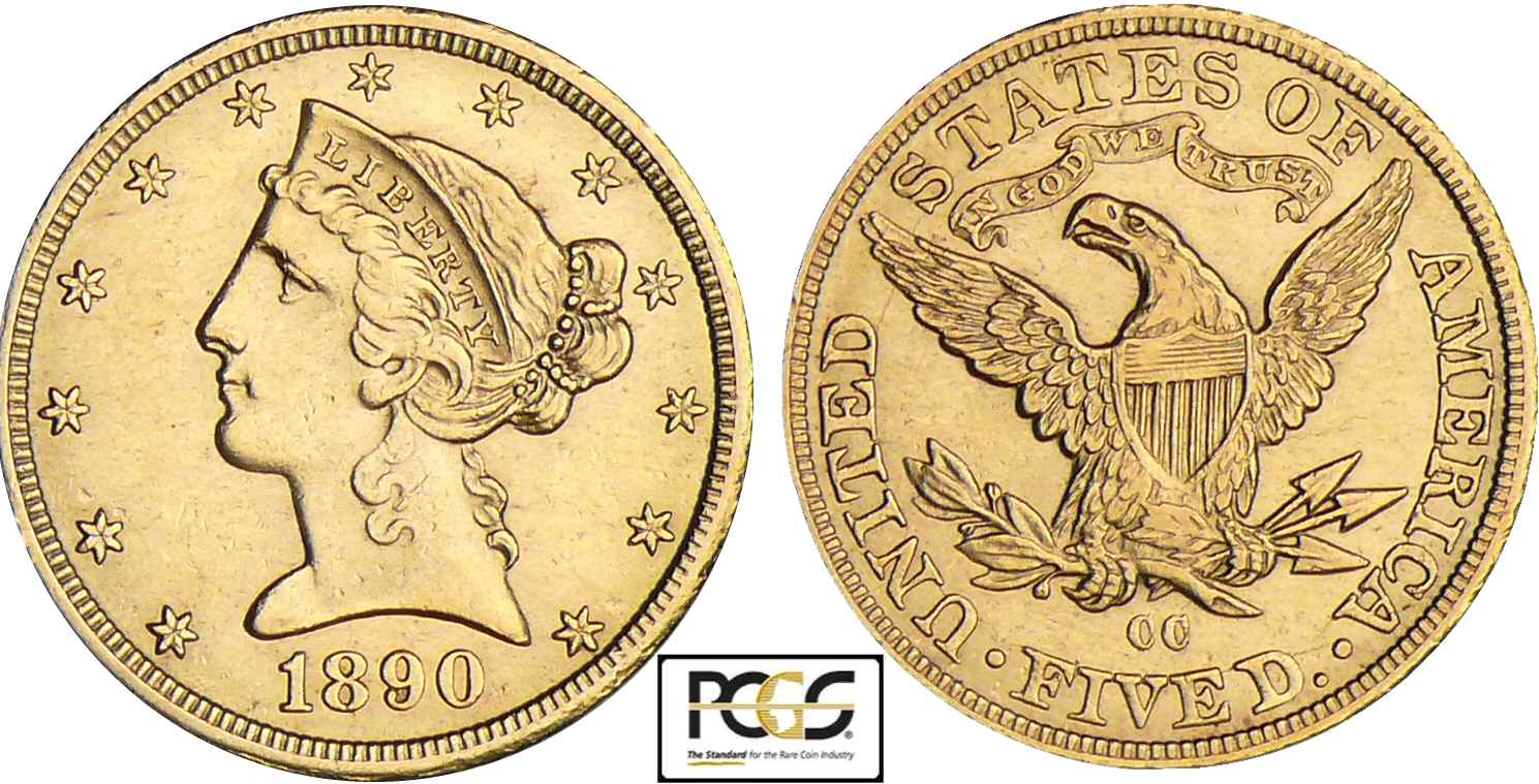 Etats-Unis – 5 dollars Liberty head 1890 CC (Carlson City)