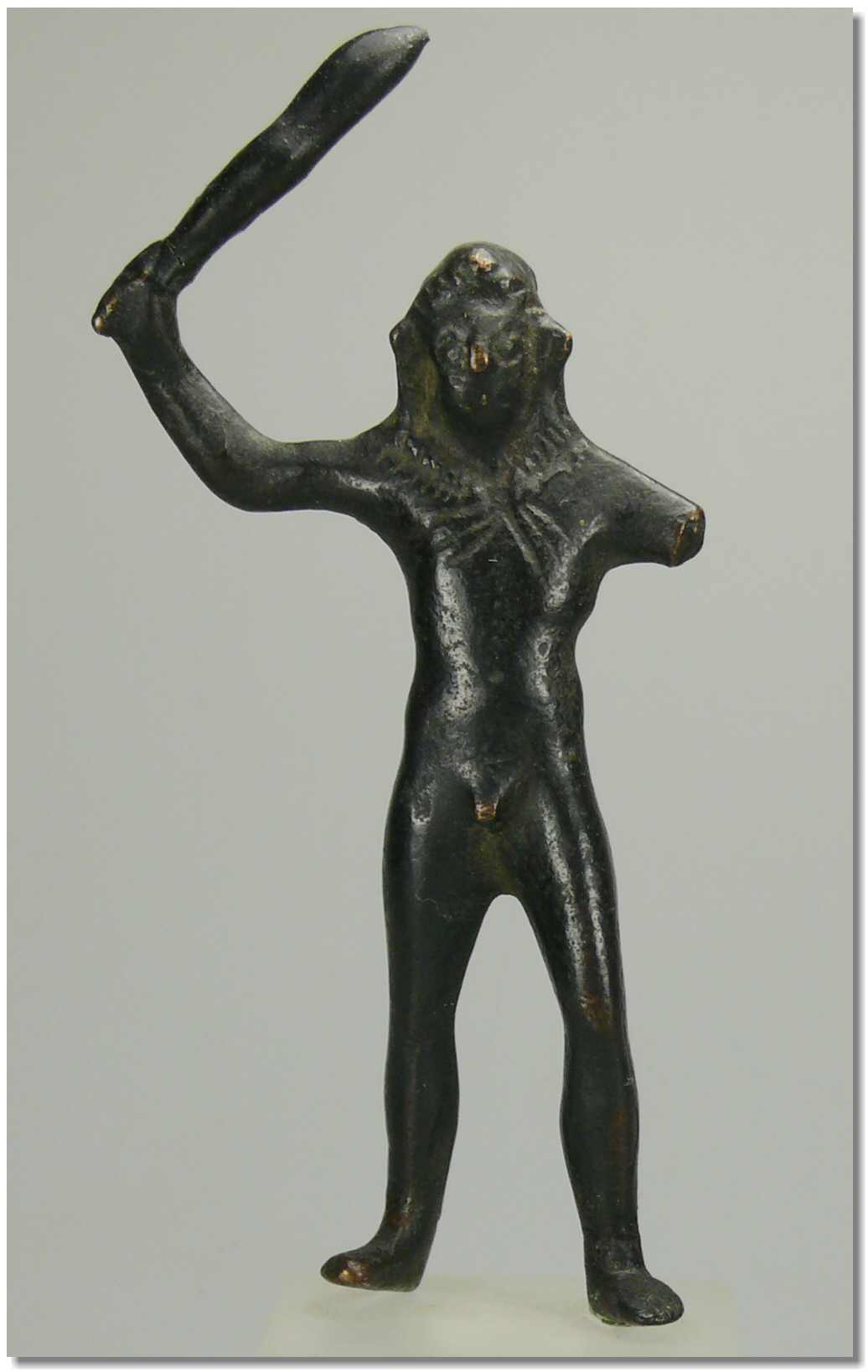 Statuette en bronze représentant Hercule nu tenant une massue. 95 mm.