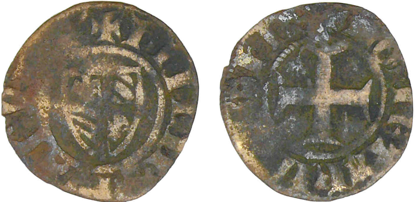 Philippe le Hardi (1384-1404). A/ PHILIPP’ DVX BVRG. Ecu écartelé de Bourgogne et de Flandre.