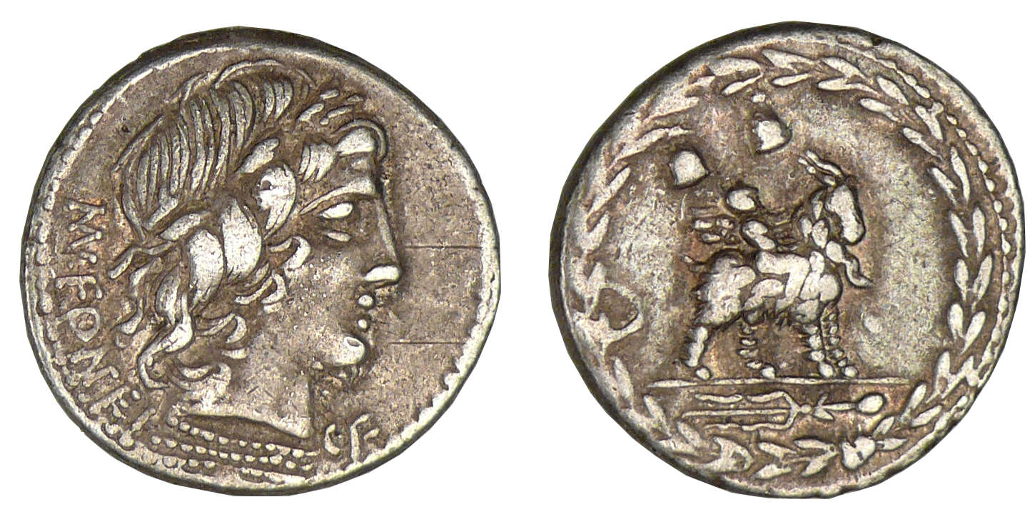 A/ MN. FONTEI.C.F. Tête laurée de Véjovis à droite ; au-dessous un foudre. AP en monogramme sous le menton.