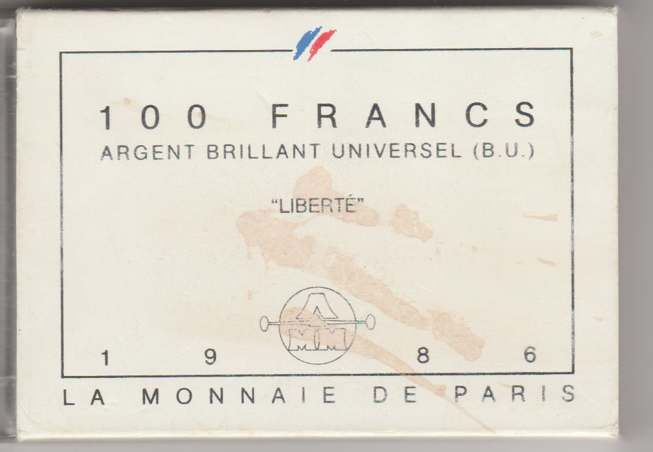 France – Boîte Brillant Universel – 100 francs Liberté 1986
