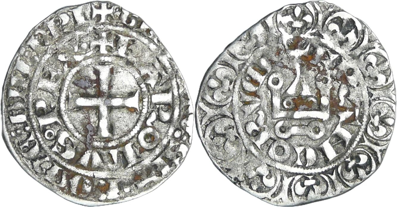 R/ + FRANChORVm. Châtel tournois. Bordure extérieure de dix lis.