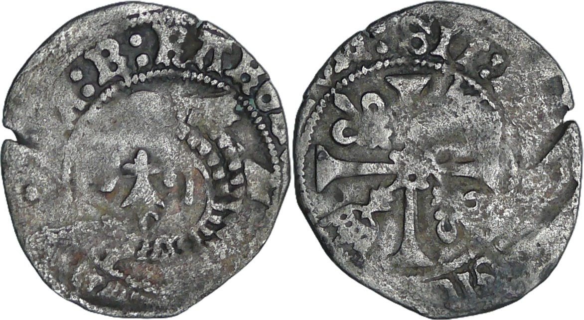 Avers : A/ KAROLVS: FRAnCORVm: REX. Dauphin à gauche, une moucheture d’hermine sous la tête.