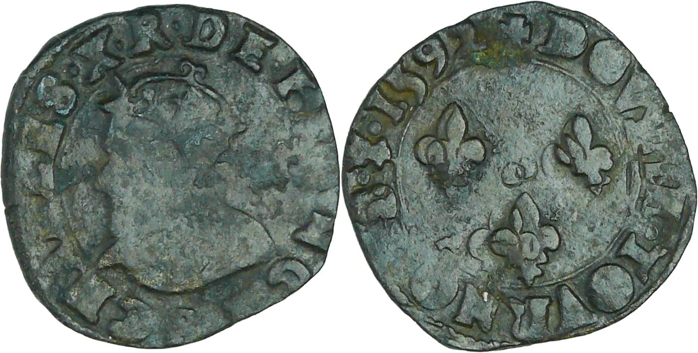 France – Charles X (1589-1590) – Double tournois – 1592 S (Troyes)