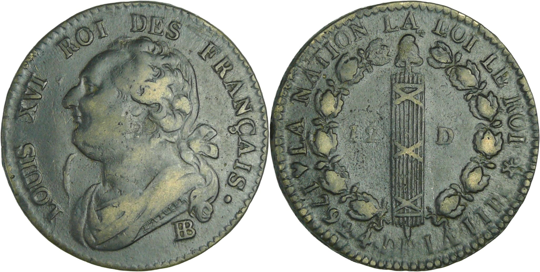 France – Constitution (1791-1792) – 12 deniers type FRANCAIS 1792 BB (Strasbourg)