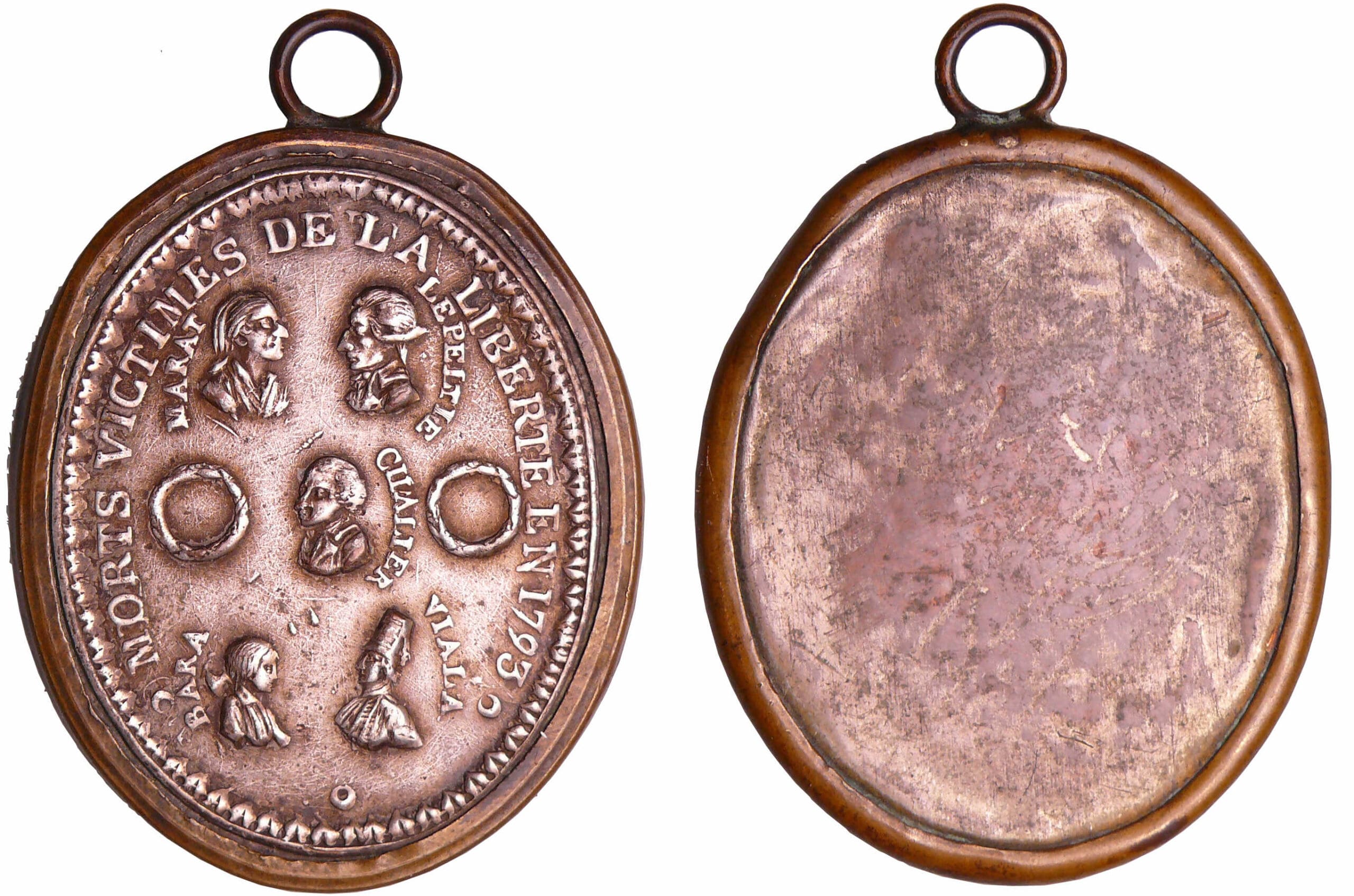 Avers : A/ MORTS VICTIMES DE LA LIBERTE EN 1793 // MARAT / LEPELTIE / CHALIER / BARA / VIALA Obverse description : Bustes de profils disposés en quinconce.